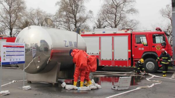 本次演練,模擬公司乙醇儲罐發(fā)生泄漏事故,公司立即啟動《危險化學品泄漏事故專項應急預案》,并向雞冠區(qū)應急管理局報告事故情況。雞冠區(qū)應急管理局啟動區(qū)應急預案,公安、消防、急救中心等政府救援部門以最快的速度趕赴現(xiàn)場,成立了以區(qū)政府為中心的應急指揮中心,在區(qū)領(lǐng)導的指揮下,在消防中隊等社會力量的不懈努力下,險情得到控制。