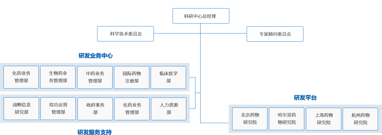 研發(fā)戰(zhàn)略與信息研究、化藥業(yè)務(wù)管理、中藥業(yè)務(wù)管理、臨床醫(yī)學(xué)、國(guó)際藥物注冊(cè)、政府事務(wù)、綜合運(yùn)營(yíng)、人力資源;定位:出規(guī)劃、定制度、搭平臺(tái)、統(tǒng)項(xiàng)目、監(jiān)進(jìn)度、促發(fā)展